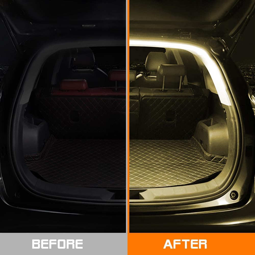 - 【Flexible Cutting+Embedded Hidden Installation】: Can be freely cut to fit the boot length of different models, ultra-thin light body embedded in the seal or gap, without damaging the original appearance of the car, to achieve ‘no trace’ lighting