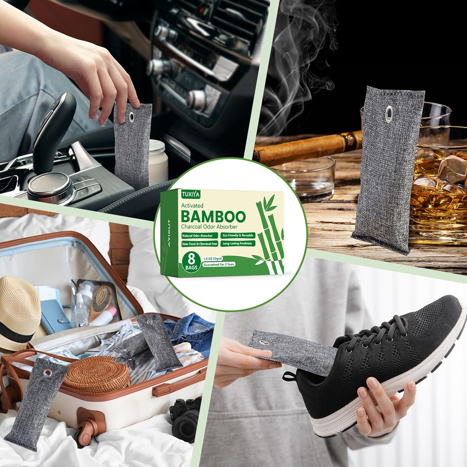 - 【Odor Eliminator for Strong Odor】:Freshen your car, home, or shoes with our bamboo charcoal air purifying bag. These natural air purifying bags eliminate unwanted smells like pet odors, basement mustiness, and more—acting like sponges to absorb odors and refresh the air.