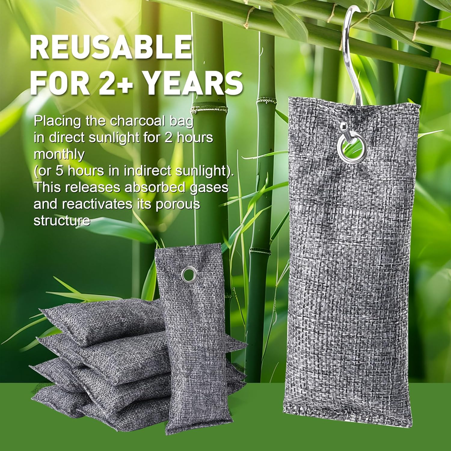 - 【Air Fresheners for Home】:Refresh your home's air for 2 years with our rechargeable charcoal deodorizer bags odor elimination, just sunbathe monthly. Perfect for bedrooms, drawers, and more. Eco-friendly & cost-effective