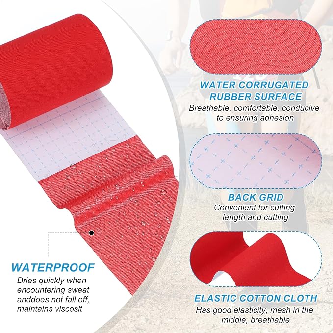 - Advantage: The sports tape is made of latex-free cotton and stretch nylon. It has good stretchability and can stretch about 60%. The mesh and water ripple design in the middle of the cotton cloth provides good comfort and breathability, which is conducive to ensuring adhesion and quick drying after sweating and not falling off