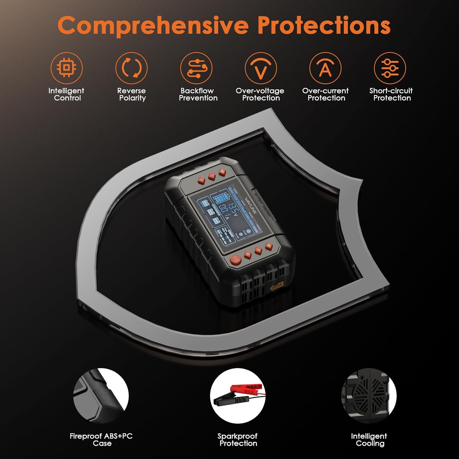 WAVLINK Smart Battery Charger, 20-Amp, Car Battery Charger with LCD Display, for 6V/12V/24V Lead-Acid/Lithium/LiFePO4 Batteries, Trickle Battery Maintainer and Desulfurizer for Car, Boat, Motorcycles