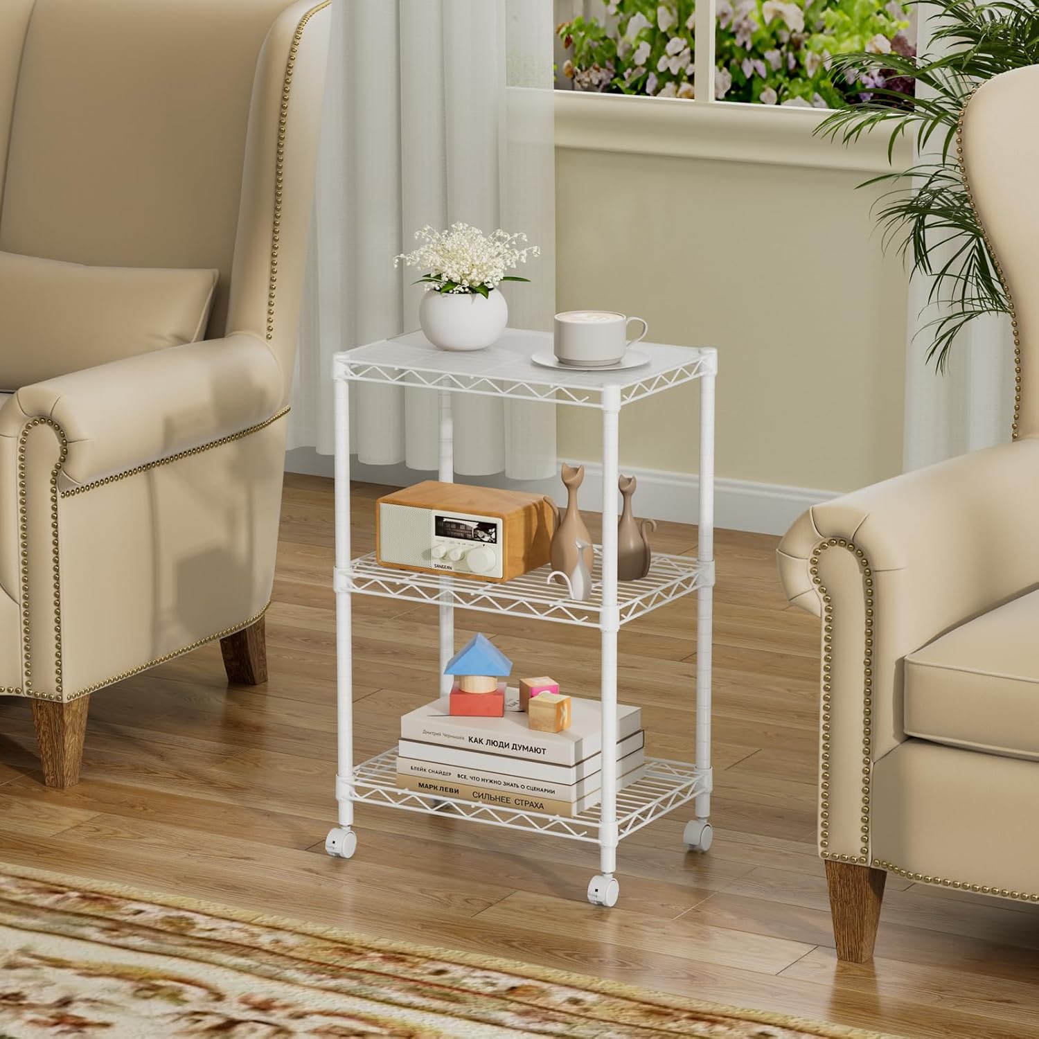- Convenient Home Storage: Metal wire shelves with adjustable spacing make perfect for narrow spaces or room corners such as kitchens, bathrooms, laundry rooms, balconies, garages, entries, or offices.