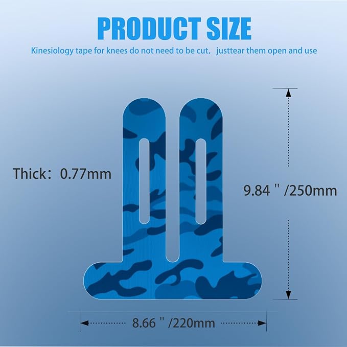 Precut Kinesiology Tape for Knees,12 Pcs – Elastic Knee Support & Stability, Pain Relief – Waterproof, Breathable, Hypoallergenic Athletic Tape (Camo Blue)