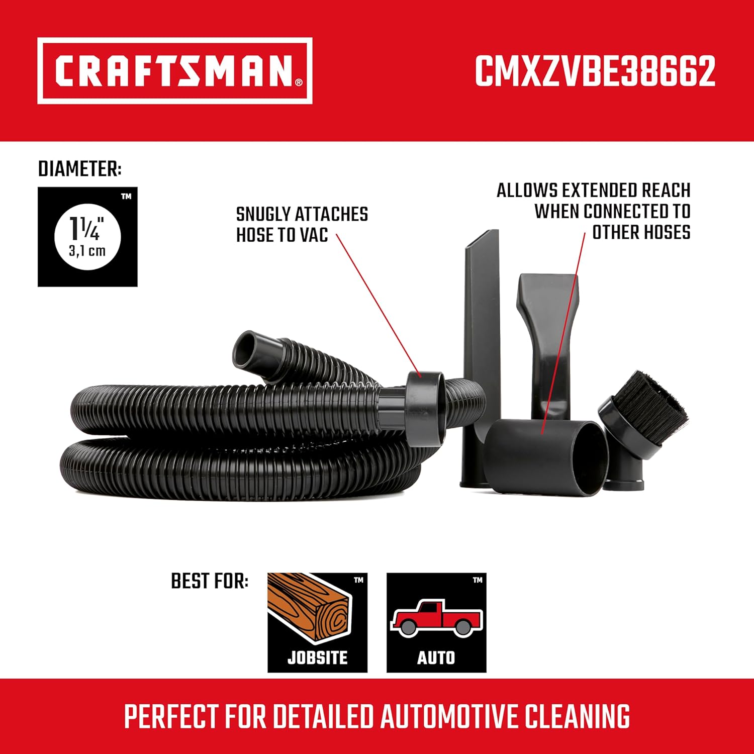 - CAR CLEANING KIT ACCESSORIES INCLUDED: Crevice Tool, Dusting Brush, Car Nozzle, 2-1/2 in. Hose Connector and Extra-Long 1-1/4 in. x 11 ft. Friction Fit Hose for extended reach