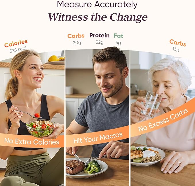 - ๐๐ซ๐๐๐ข๐ฌ๐ข๐จ๐ง ๐๐จ๐ซ๐ญ๐ข๐จ๐ง ๐๐จ๐ง๐ญ๐ซ๐จ๐ฅ: Weigh foods from 3 grams to 5,000 grams in 1-gram increments for better portion control, including 7 different units: g, ml (water), ml (milk), oz, fl oz (water), fl oz (milk), and lb:oz