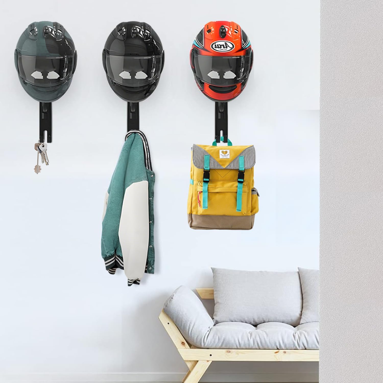 - MULTI-PURPOSE DOUBLE HOOKS: Equipped with double hooks at the bottom, this helmet holder allows you to securely hang motorcycle gloves, keys, small gadgets and other daily essentials. It’s a practical and convenient solution for organizing your everyday items.