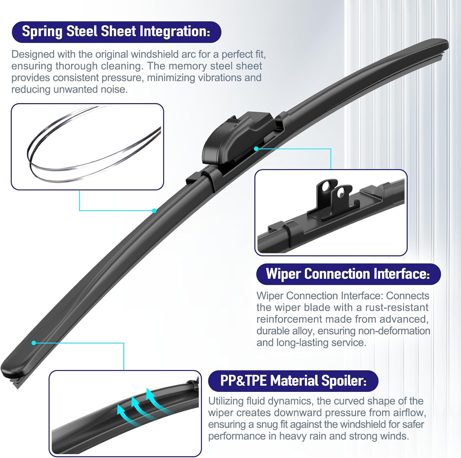 - Fitment: AJK Replacement for Hyundai Tucson 2022 2023 2024 2025 silicone wiper blades offers advanced technology for vehicles with conventional wiper assembly