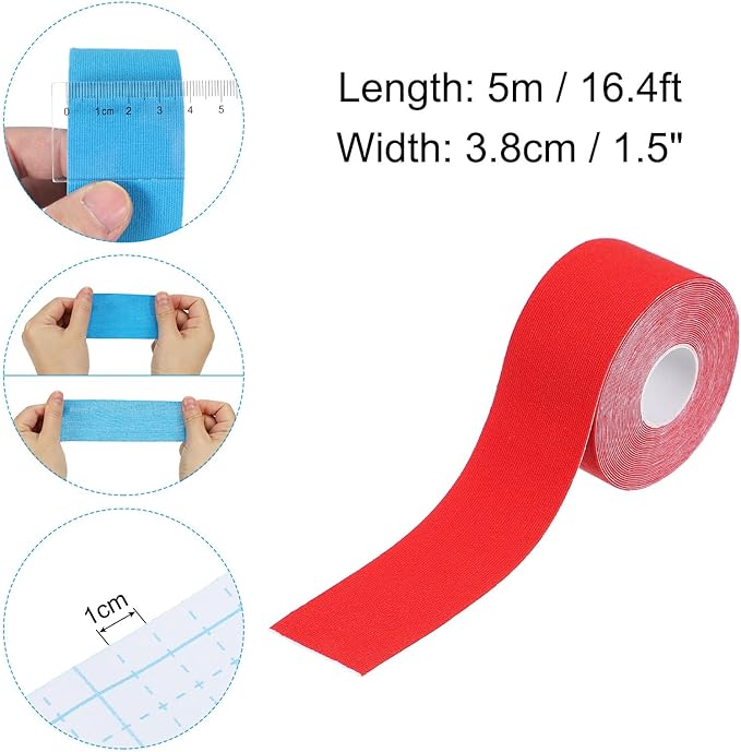 - Color: Red; Material: Cotton; Length: 5m / 16.4ft; Width: 3.8cm / 1.5 Inch; Packing List: 1 Roll x Athletic Tape