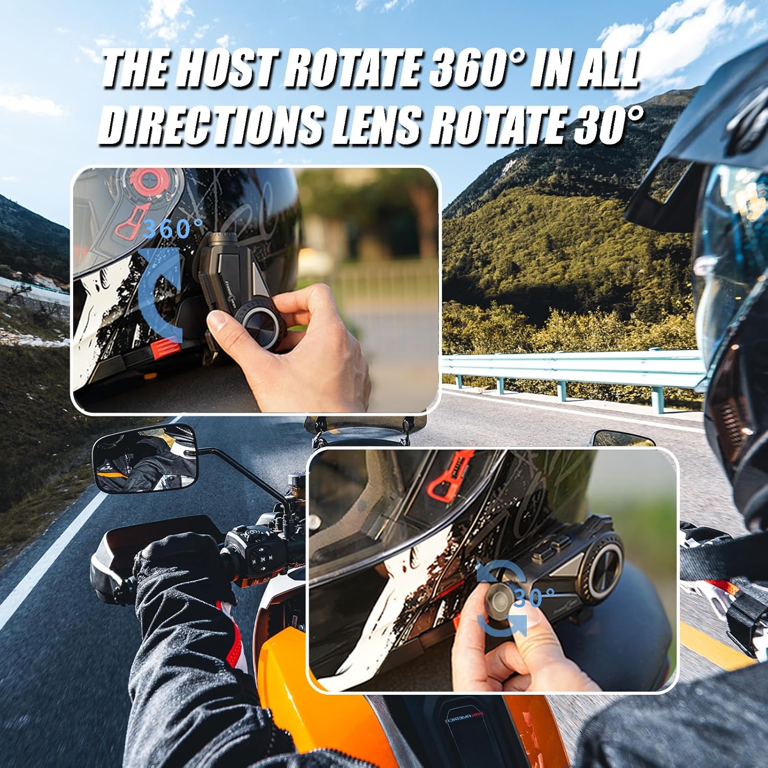 - ăFast-Charging PerformanceăThis motorcycle helmet bluetooth headset supports USB-C fast charging, allowing you to power up quickly during breaks. Loop recording auto-saves 6hr footage to 128GB card