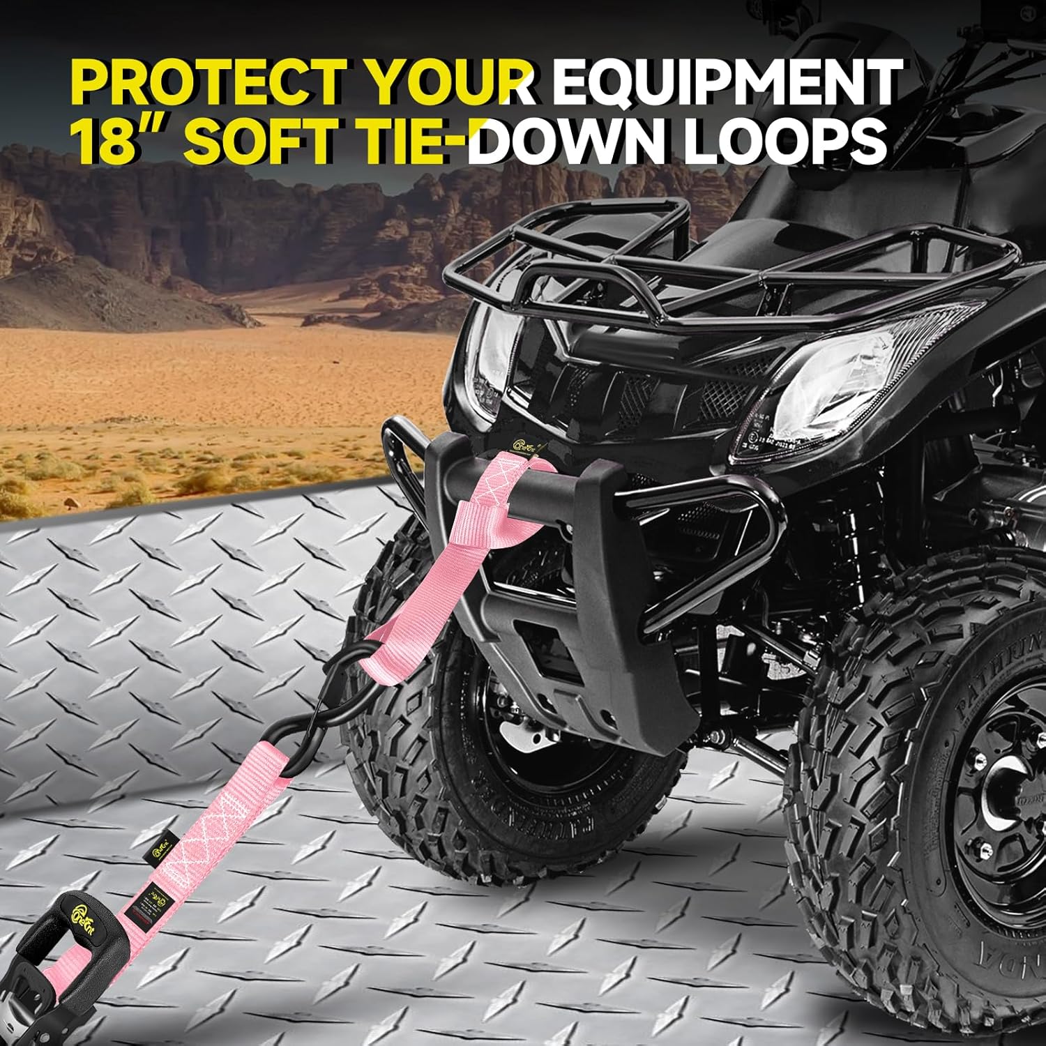 4Pcs Heavy Duty Ratchet Straps-1.6”x16ft Ratchet Strap Tie Down Kit with Padded Handles+Coated S Hooks+Soft Loop Tie-Downs-6000 Pound Break Strength(Pink)