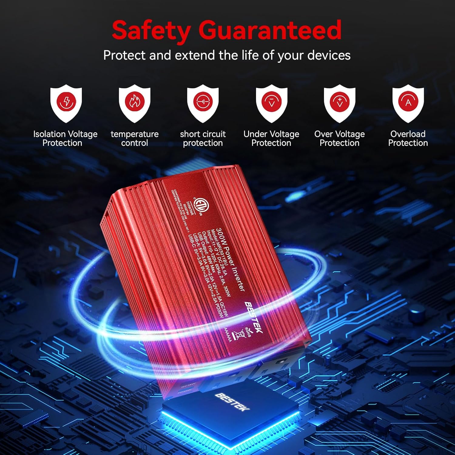 BESTEK 300W Car Power Inverter - DC 12V to 110V AC Car Plug Adapter with 30W USB-C & 18W USB-A Dual AC Outlet, Fast Car Charger Adapter for Laptop, Vehicles, Road Trip Essentials