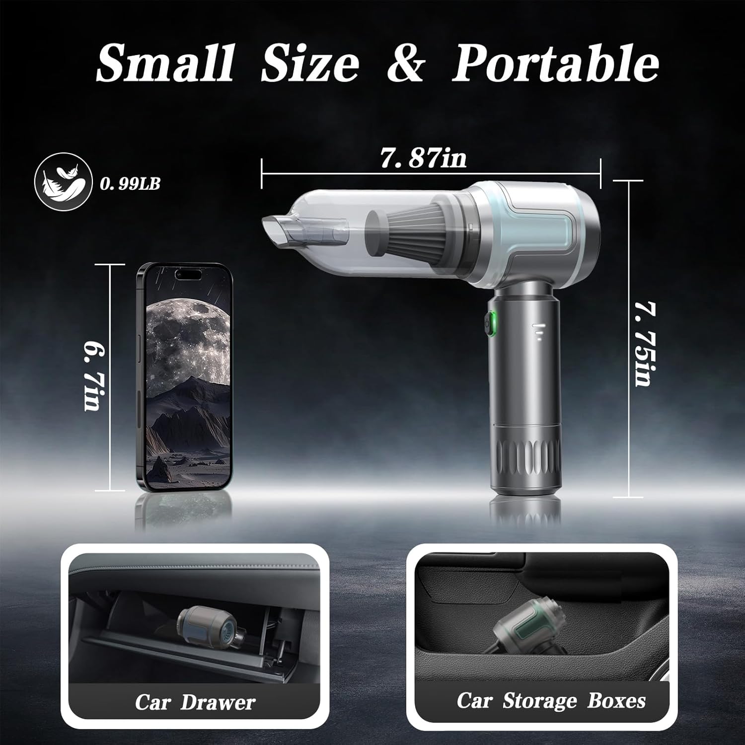 Car Vacuum Cleaner,16000PA High Power Mini Vacuum Cleaner, 7-in-1 Rechargeable Handheld Vacuum, Portable Cordless Compressed Air Duster & Air Blower for Cars, Home, Office, Pet