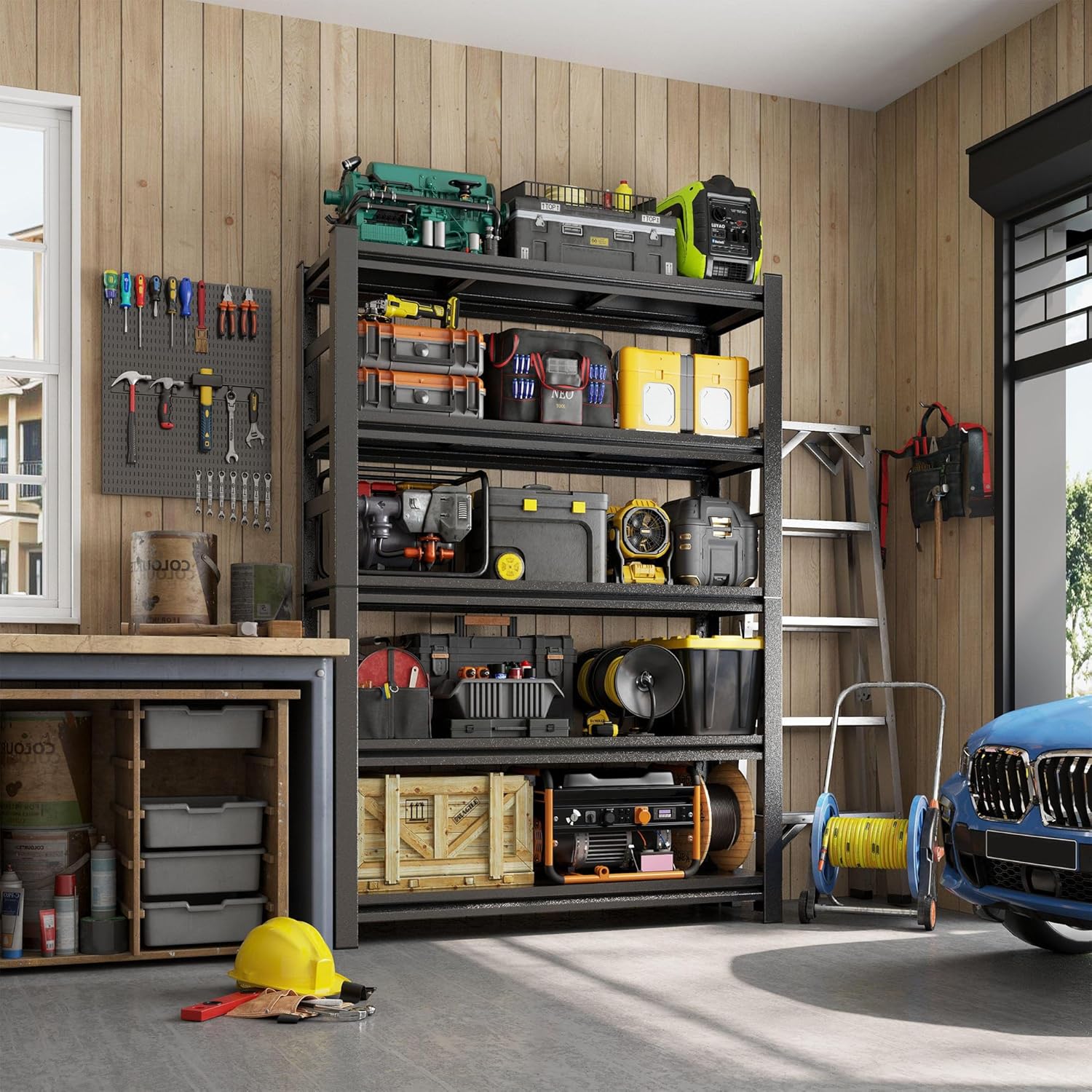 87"H Garage Shelving Heavy Duty Rack, 4500 LBS Ultra Large Capacity 5 Tier Adjustable Storage Shelves, Metal Industrial Shelf Units for Garage, Basement and Warehouse, 87"H×47.24"W×23.6"D, Black