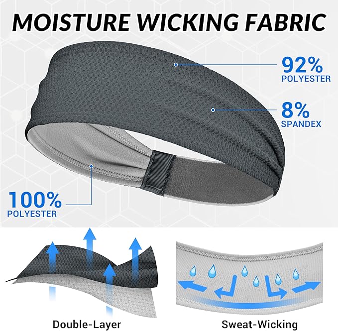 - For All Kinds of Sports and Work: The sweat headband for men is machine washable and quick-drying, can withstand daily wear and tear, perfect for running, cycling, football, yoga, fitness, workout, soccer, basketball, hiking, volleyball, exercise, tennis, baseball, also can be used as a work mens headband for mechanical work,outdoor work, lawn and construction workers,etc