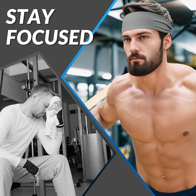- For All Kinds of Sports and Work: The sweat headband for men is machine washable and quick-drying, can withstand daily wear and tear, perfect for running, cycling, football, yoga, fitness, workout, soccer, basketball, hiking, volleyball, exercise, tennis, baseball, also can be used as a work mens headband for mechanical work,outdoor work, lawn and construction workers,etc