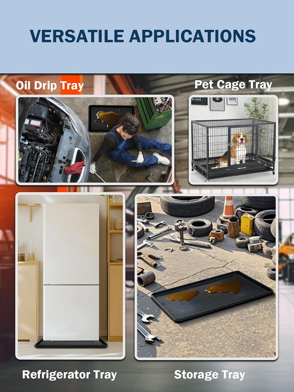 - 【Wide Range of Uses】Great value in multi-pack options. Stackable for compact storage when not in use. Suitable as an oil drip tray, snow blower drip catcher, engine leak tray, floor protector under appliances, mini fridge tray, litter box liner, or even for collecting condensation under HVAC units. Can also be used as a general-purpose utility tray.