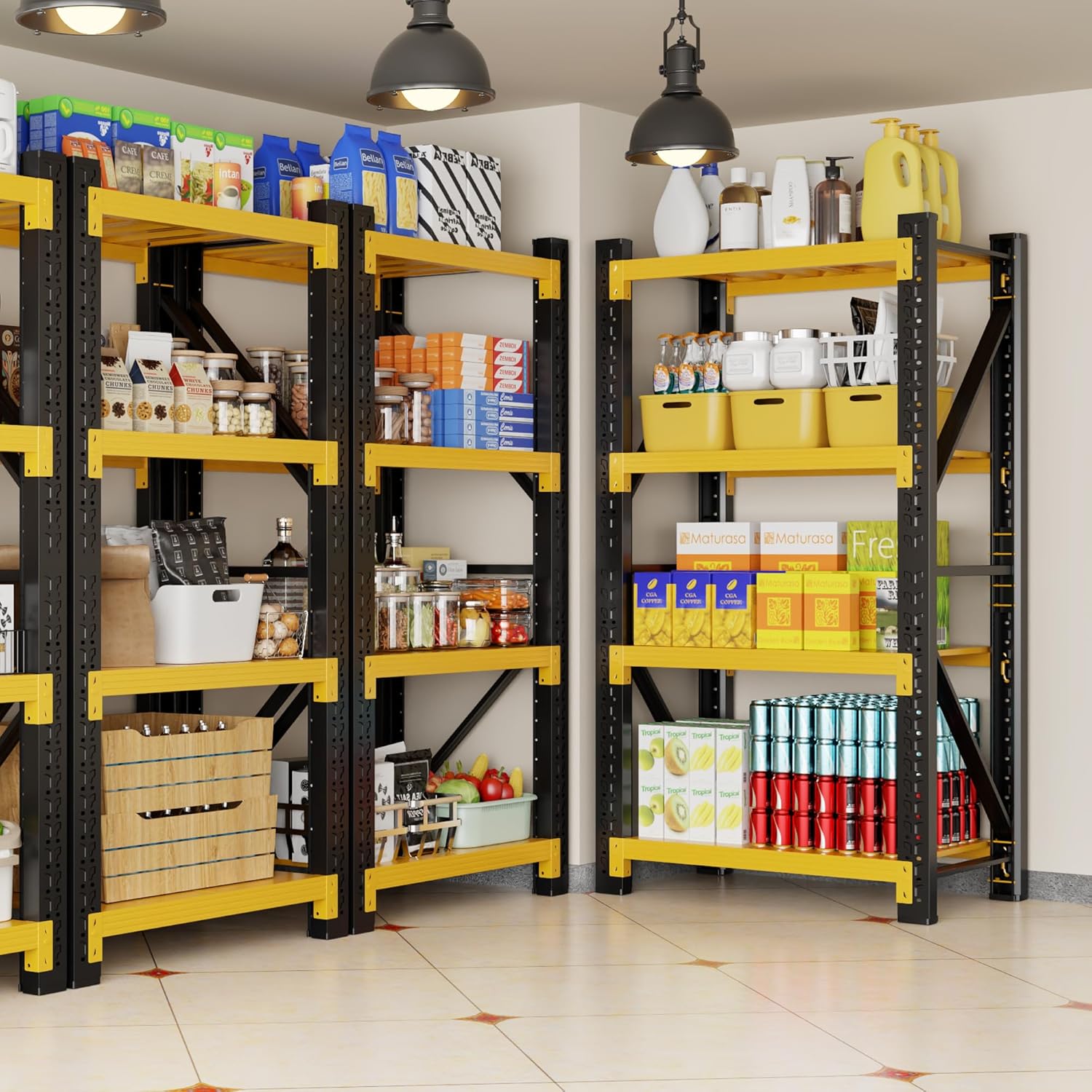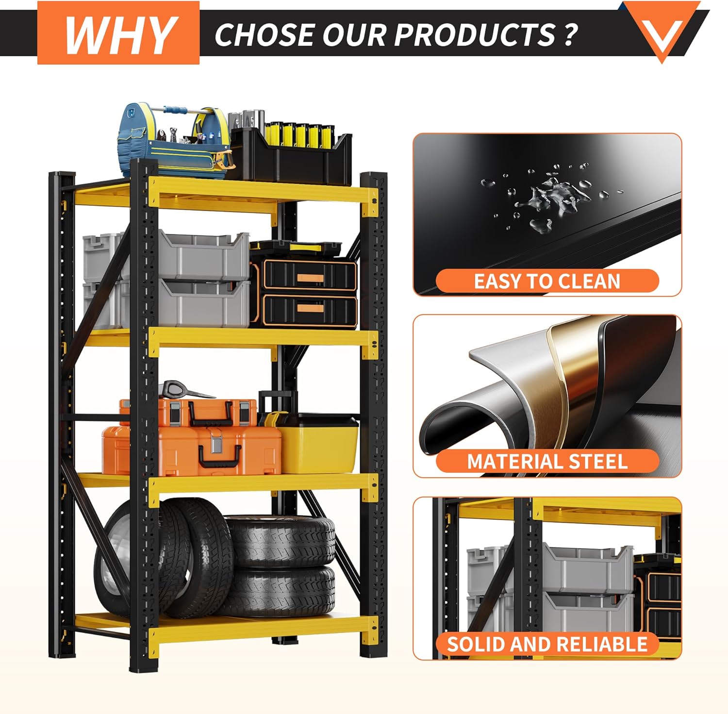 3000LBS Garage Shelving 32" W Garage Shelving Heavy Duty 4-Tier Metal Storage Shelves Adjustable Shelf Unit Storage Rack for Basement Supermarket Warehouse 32" W x 20" D x 63" H Yellow