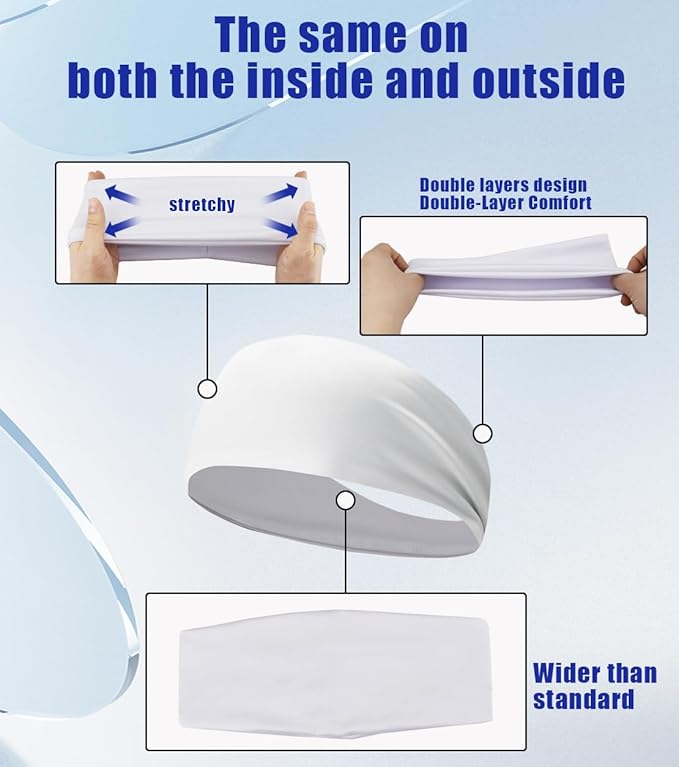 - 【Stretchy, Breezy & Light!】 The sport headbands are made with 90% polyester (hello, breathability!) and 10% spandex (just the right stretch!). Feels like a gentle hug – comfy for hours, whether you're doing outdoor sports, in the gym, or working at home.