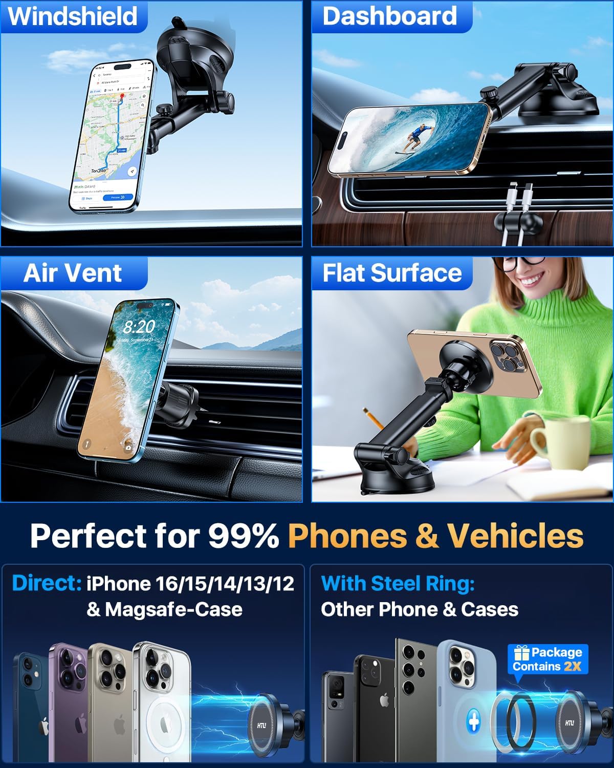 - ăMagnetic Phone Mount for 99% Phone & Phone CaseăOur products belong to universal car magnetic cell phone holder,perfect fit for cars, trucks and other special vehicles.This magnetic cell phone mount is compatible with all mobile phones between 4-7 inch,compatible with iPhone 16 Pro Max 15 14 13 12 11 XR X 8 7 SE mini,for Samsung Galaxy S25 Ultra S24 S23 S22 S21 A53 A22 Motorola,etc.