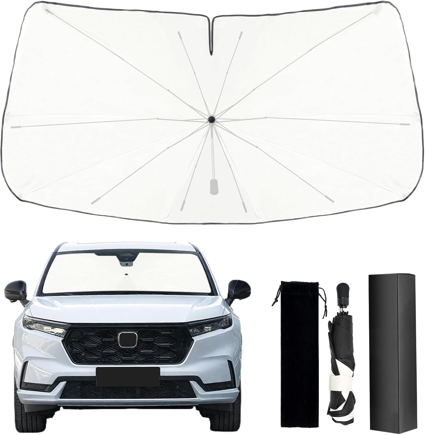 - DURABILITY: Built with 10 robust umbrella ribs, this front windshield umbrella sunshade is extremely sturdy. The bendable tubes can be flexed 360Β°, and the silicone tips protect your car's interior from scratches and damage, ensuring long-lasting use and peace of mind.