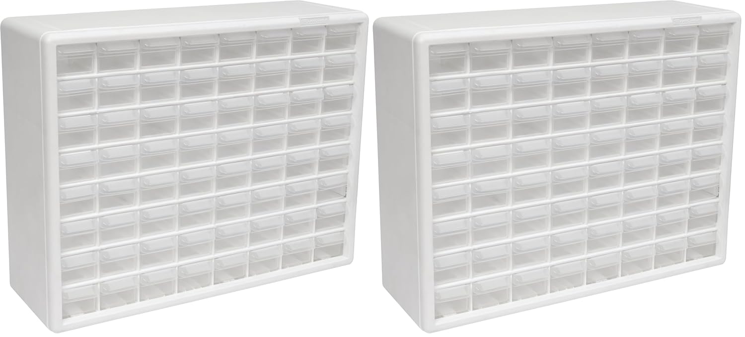 Akro-Mils 64-Drawer Plastic Drawer Storage Cabinet for Garage Organization, Bead Organizer, Building Bricks Storage, Teacher Toolbox, Makeup Organizer, 20-Inch W x 6-Inch D x 16-Inch H, 10164 White