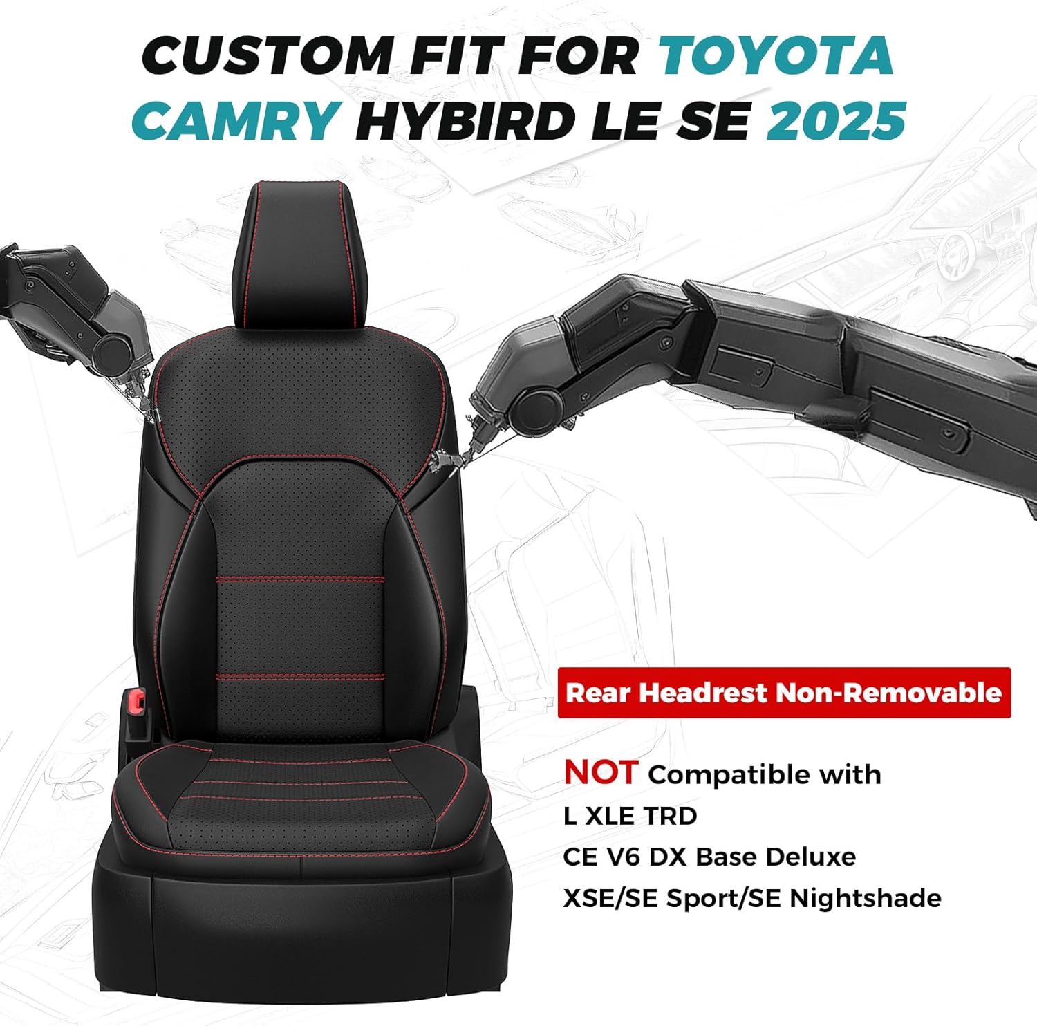 - ăCustom Car Seat Covers 1:1ă: Precisely cut and custom tailored to camry seat covers for a glove-like fit. Exclusively fit for Toyota Camry Seat Covers LE SE 2025. Since they have the same or similar seat size. (Non-Removable Rear Seat Headrest, NOT Fit for XLE XSE)