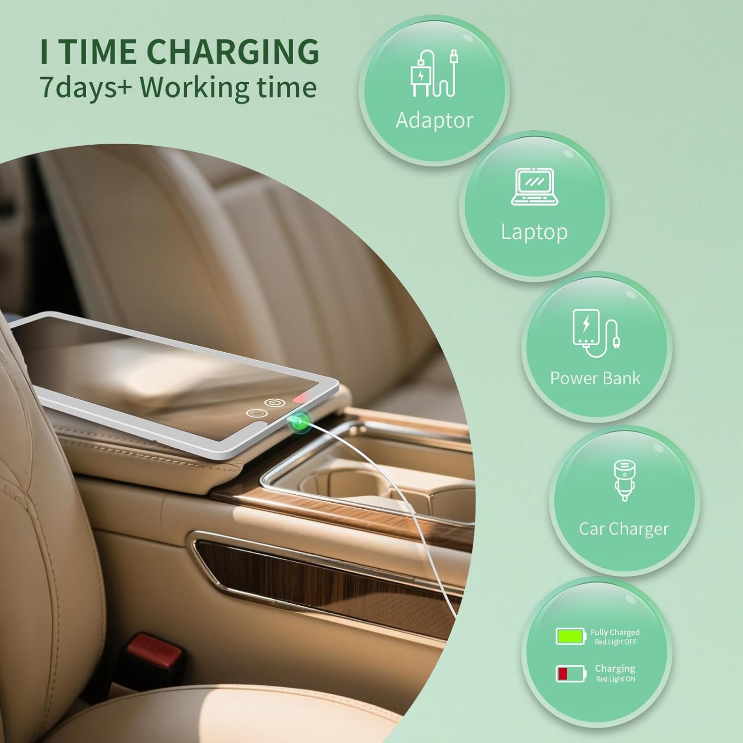 - ăConvenient and Portable Chargingă Equipped with a robust built-in 1500mAh lithium battery, the mirror can be charged via a variety of convenient methods, including your car's cigarette lighter socket, a standard household socket, a computer USB port, or even a portable mobile power supply. This means you can use the car beauty mirror freely anytime, anywhere, without being tethered to a power outlet. The battery offers extended usage time on a single charge, ensuring that you're always ready for your next beauty session.