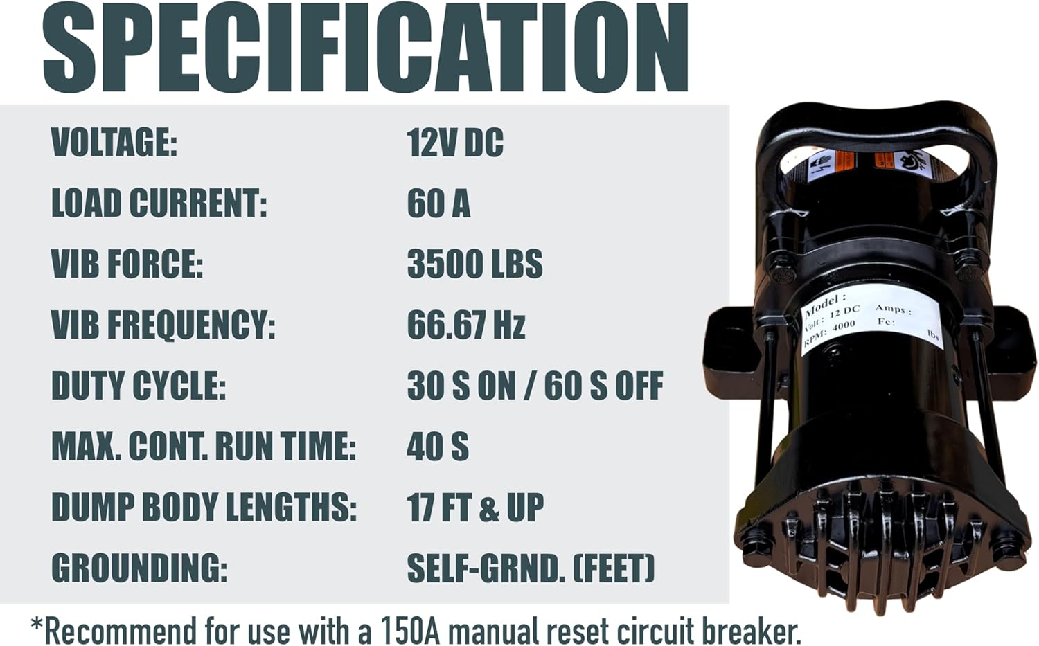 Dump Truck Vibrator Replacement for Clean Bed, Shake Out Excess Material in Truck Bed (DC-3500)
