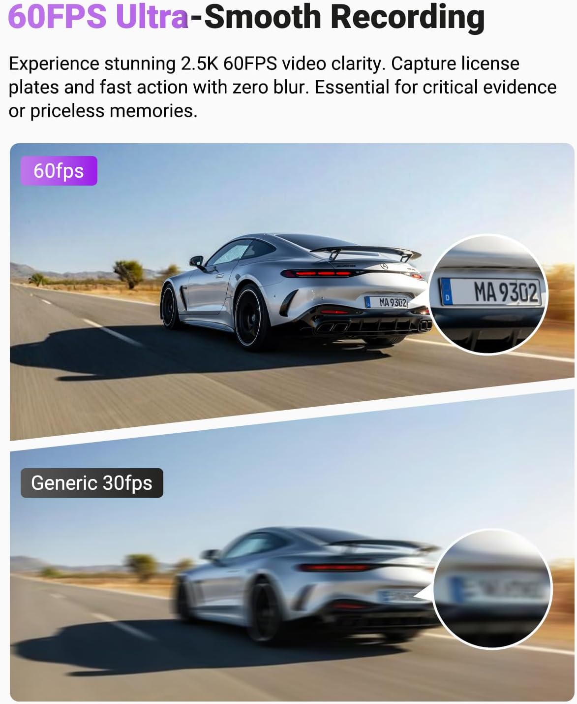- [Crystal-Clear 2.7K Recording] Featuring the STARVIS 2 and F1.8 aperture, Vantrue S1 Pro dash cam records crystal-clear 2.5K@60FPS — double the frame rate of standard 30FPS dash cams to eliminate motion blur during high-speed driving or sudden braking, delivering the critical details like license plates and road signs.