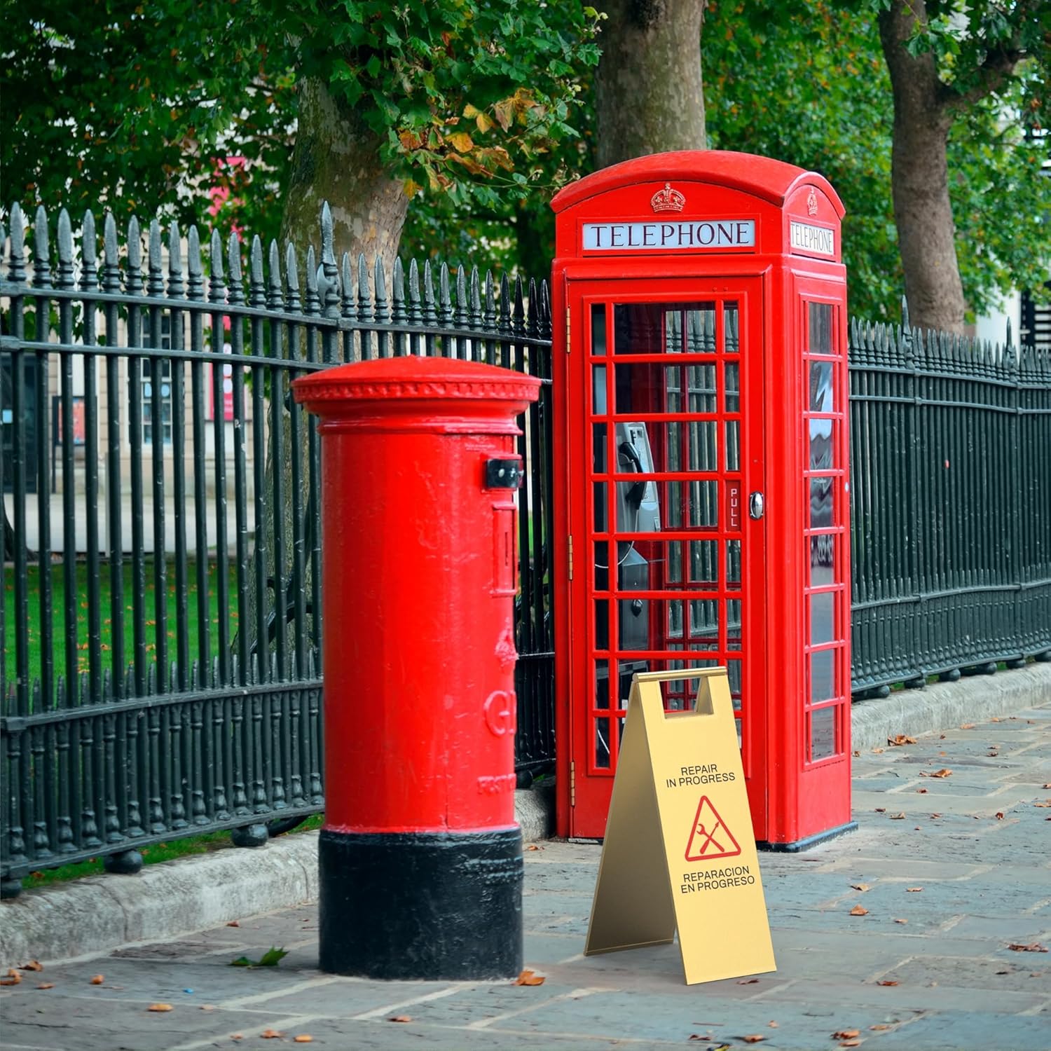 Stainless Steel Repair In Progress Sign Portable Foldable Sign 2-Pack (Gold)