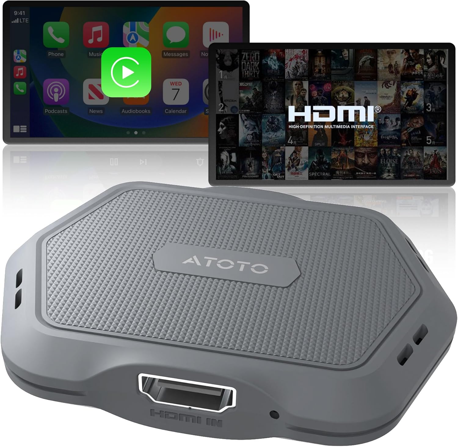 AD1 Wireless Carplay Adapter with HDMI, 2 in 1 Upgraded Dongle for Wired CarPlay Cars, Plug & Play HDMI Multimedia Hub for TV Box/Game Console/DVD/Blu-ray, Bluetooth 5.2, OTA Updates