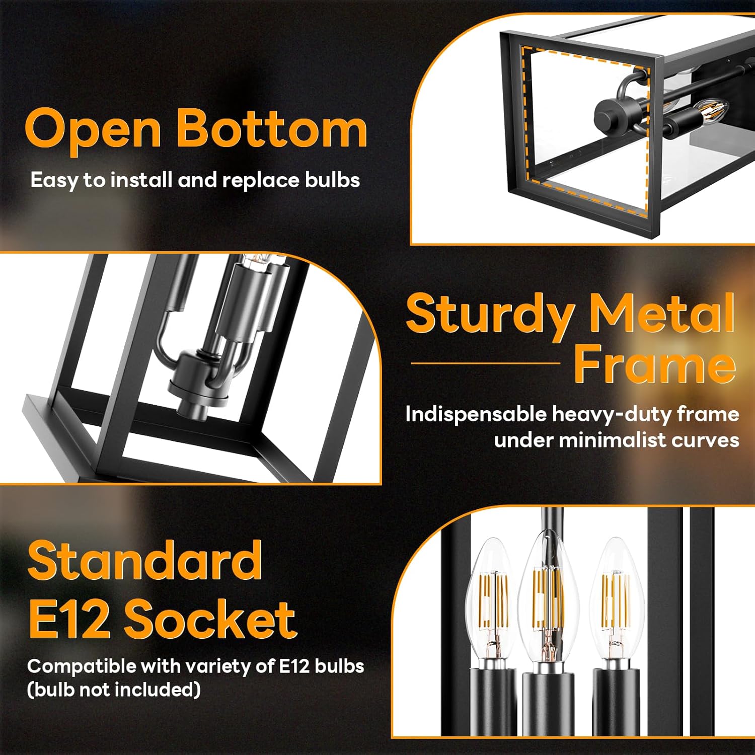 - 【Black Outside Lamps for House】Why choose our exterior light fixtures wall mounted? The stunning tiered rooftop head design, elegant matte black finish, clear glass and the clean rectangular lines design will elevate your home. Our large outdoor house lights with dusk to dawn sensor blend modern and traditional aesthetics seamlessly. The open bottom design enables easy bulb replacement without disassembling the fixture. Providing a stylish while functional lighting solution for your home.