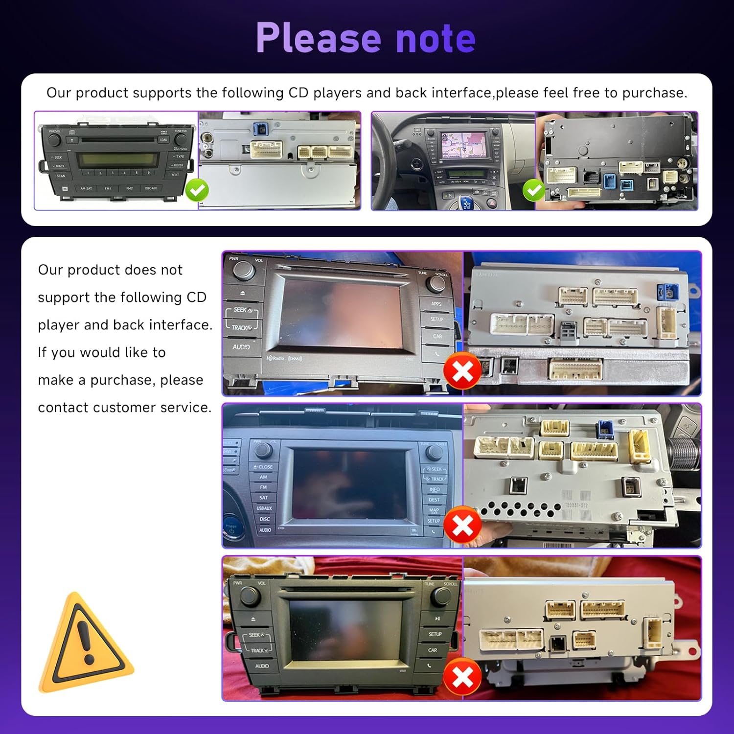 - [Vehicle Compatibility]: This car radio is specialized for Toyota Prius 2010-2015 with JBL, including the custom frame kit and dedicated wiring harness. Please check the pictures to confirm fitment issues before purchasing, if you are unsure please ask us.