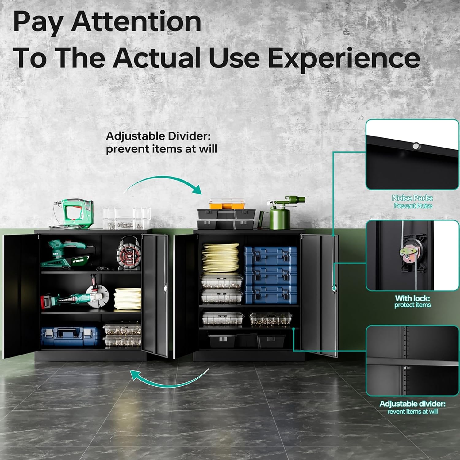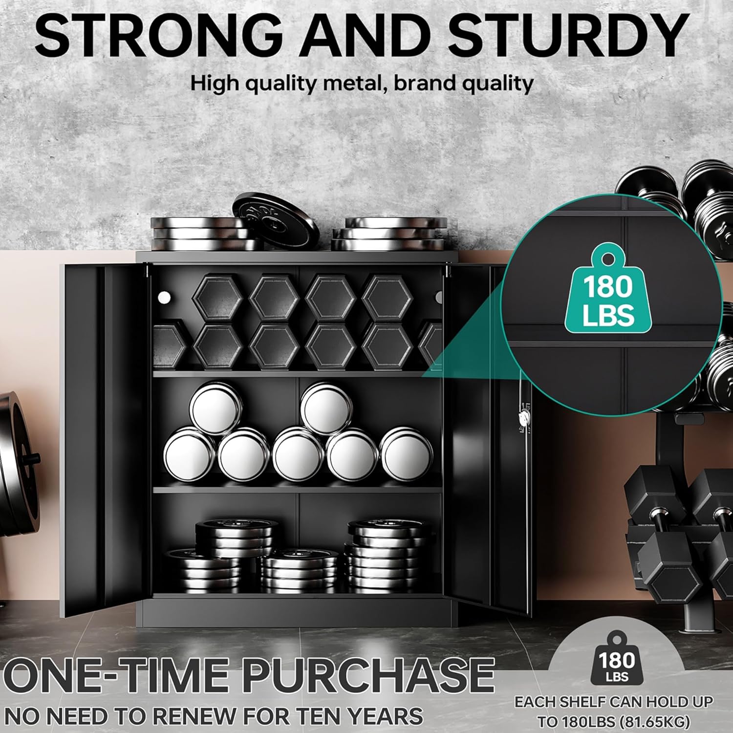 SISESOL Small Metal Storage Cabinet with Doors and Shelves,36 inch Black Locking Garage Cabinet,Lockable Short Steel Cabinets for Home,Office,Shop,Garage