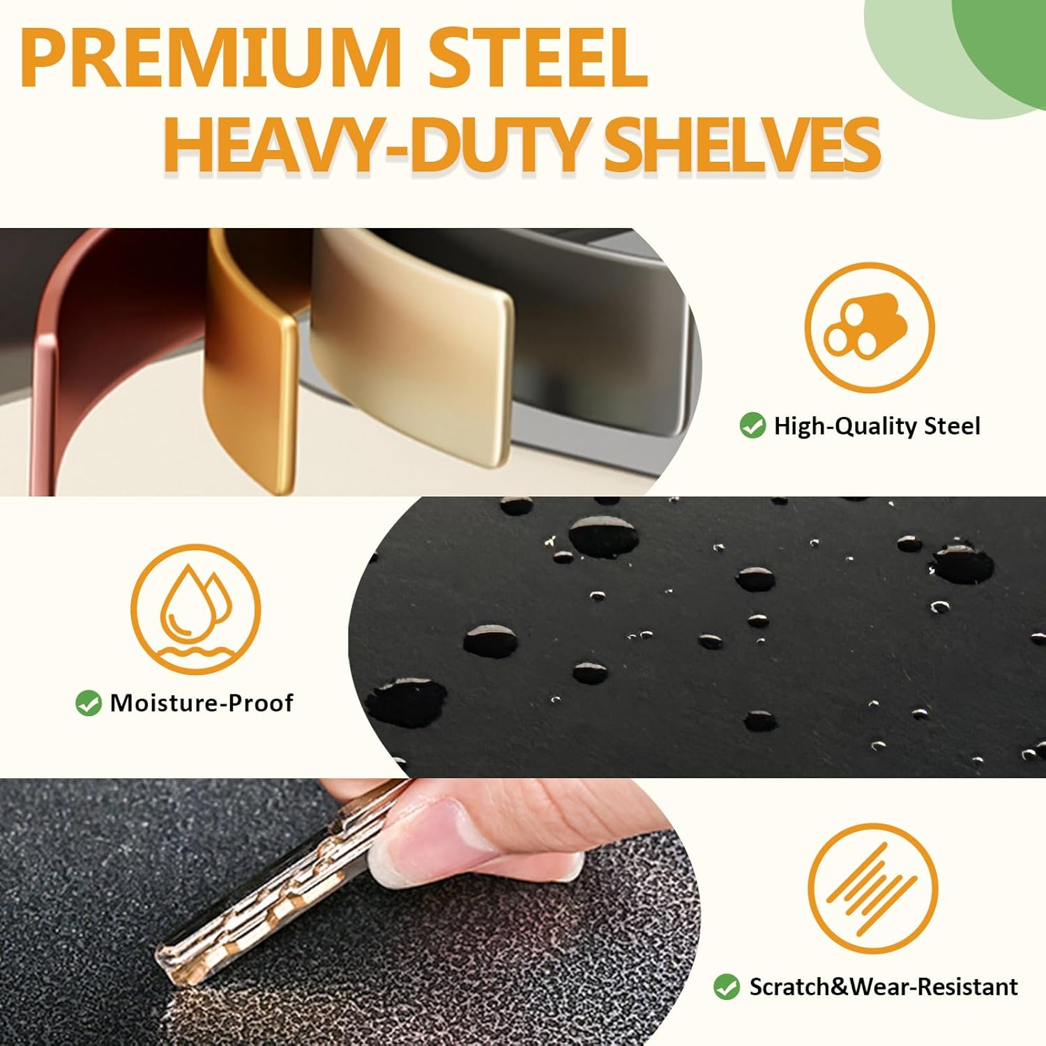 - ăRust-Resistant, Scratch-Proof & Durableă Made of high-quality steel with a protective powder-coated finish, this shelving unit resists rust and scratchesâeven in humid kitchens, sunlit balconies, or steamy pantries. Unlike wooden shelves, it wonât warp, crack, or attract moisture, making it a longer-lasting and more reliable choice for any home storage space.