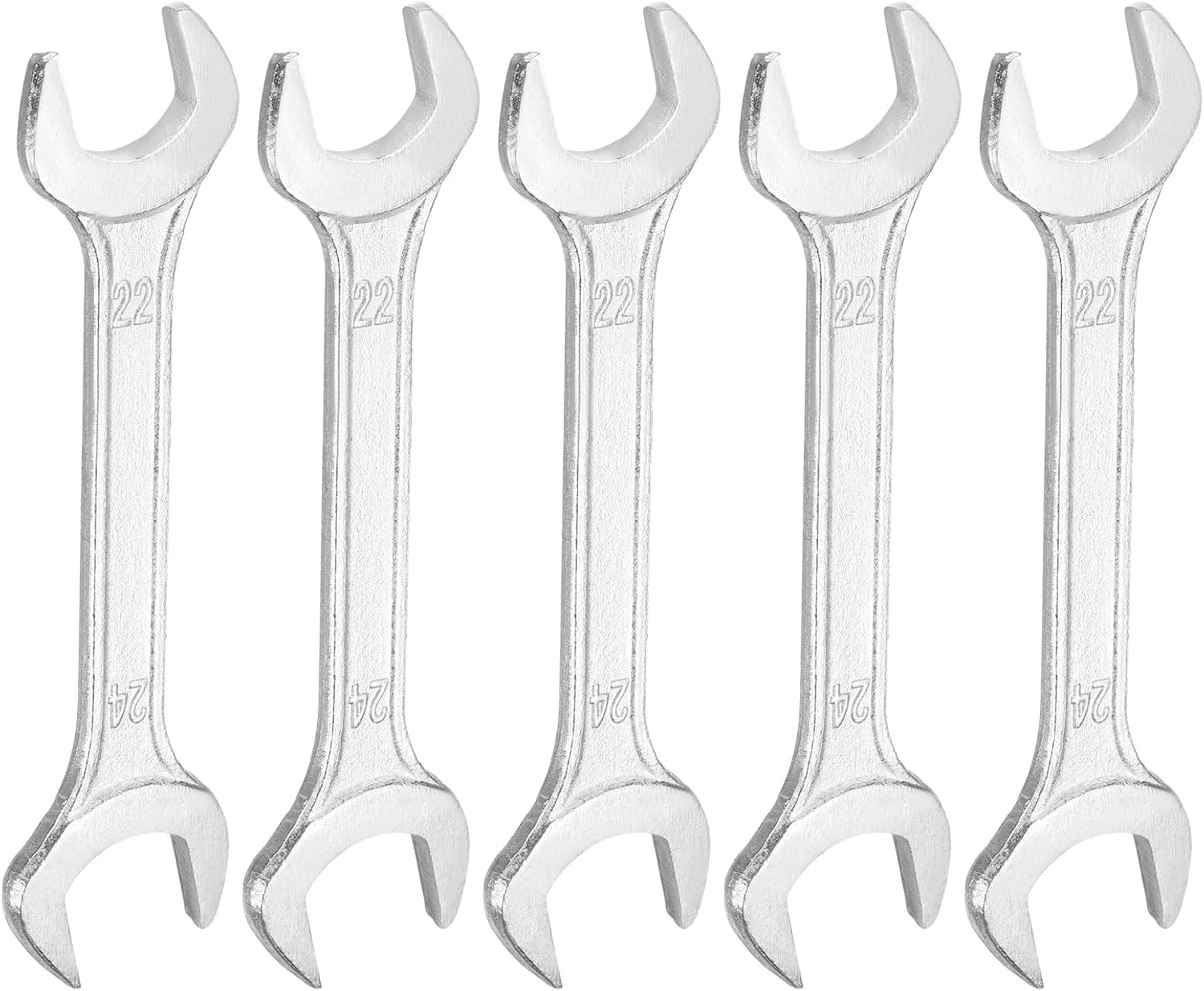 HARFINGTON 5pcs Double Open End Wrench 22mm x 24mm Metric 15 Degree Offset Angle Small Flat Head Wrench Galvanizing Open Ended Spanner for Automotive Repair Furniture Assembly