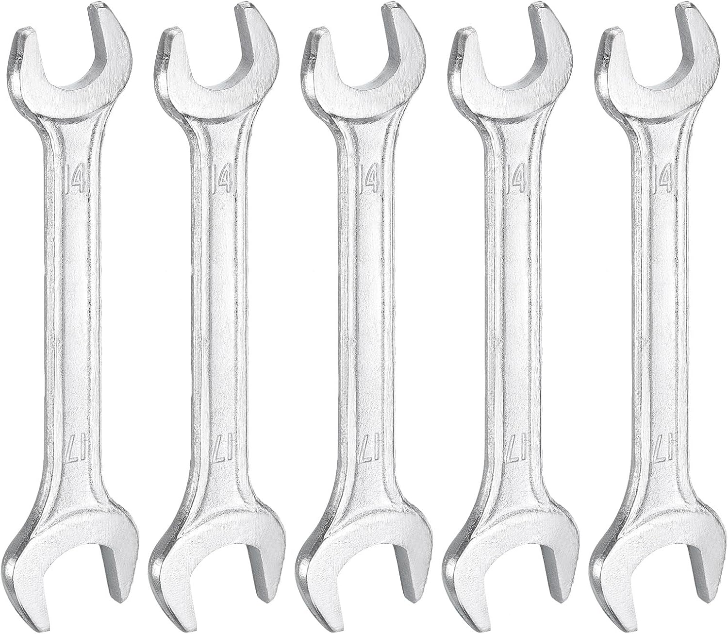 HARFINGTON 5pcs Double Open End Wrench 14mm x 17mm Metric 15 Degree Offset Angle Small Flat Head Wrench Galvanizing Open Ended Spanner for Automotive Repair Furniture Assembly