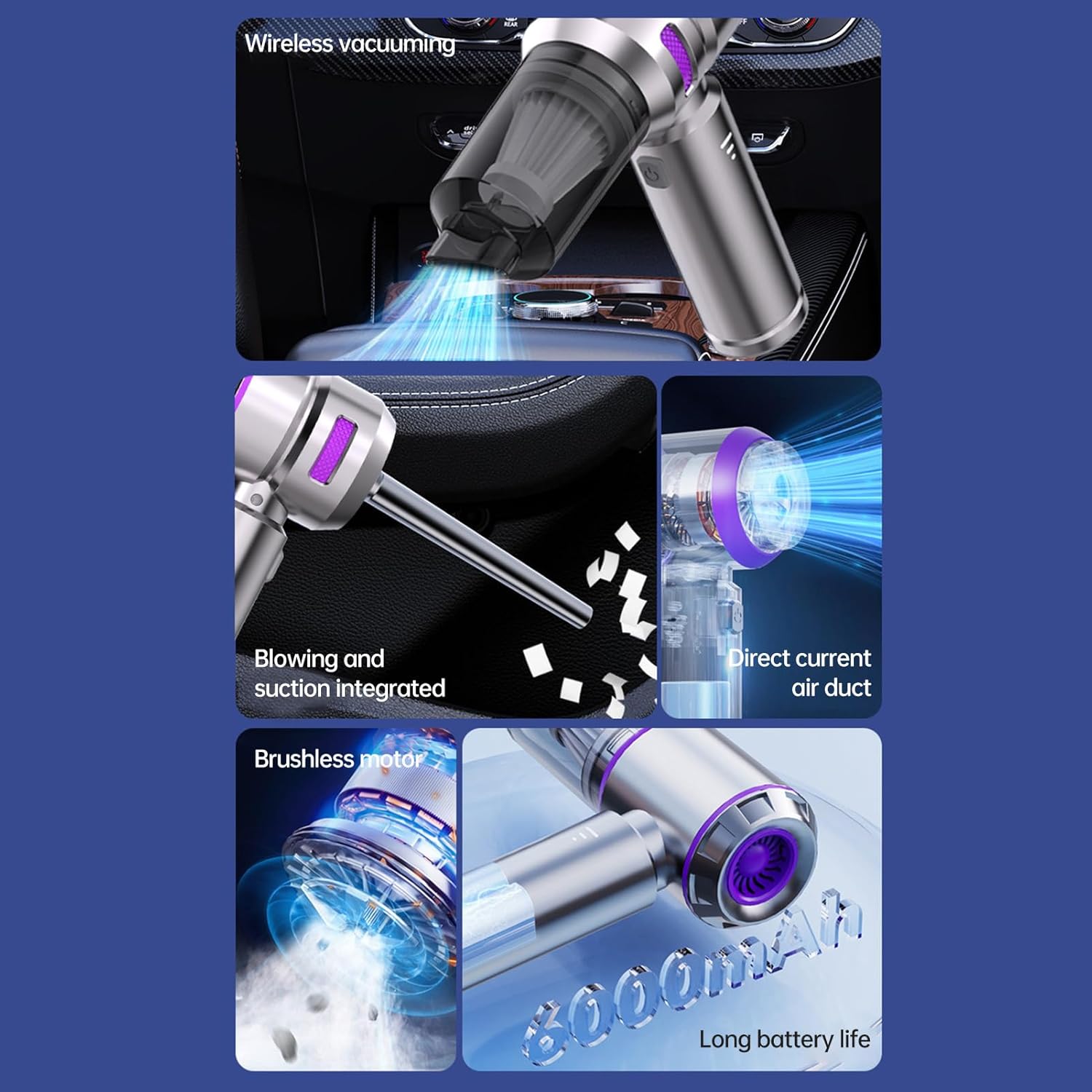 - ăVersatile 4-in-1 DesignăMore than just a vacuum cleaner, this car vacuum is equipped with a variety of accessories that can blow, vacuum and pump for a variety of scenarios, which is very helpful to reach small areas that a larger vacuum can't, it's perfect for removing dust, cleaning keyboards, inflating outdoor gear and deflating storage bags, anytime, anywhere.