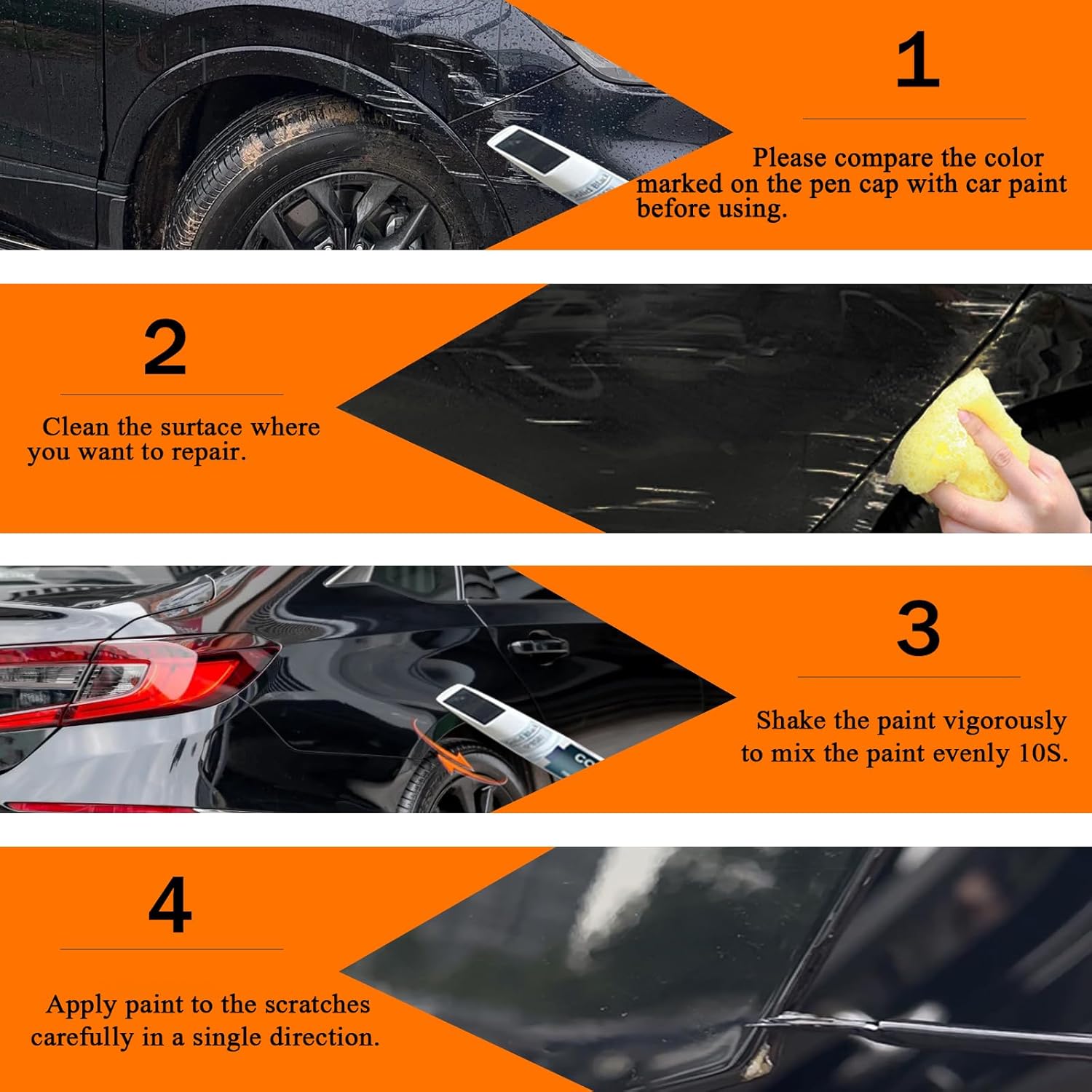 - ăApply adviceăThis paint is easy to use. Simply clean the surface and remove the grease, and shake for about 1 minutes to mix the paint well. paint repair kit is suitable for small chips or larger dings. It will dry in 10 minutes. Before use, please try it on paper to confirm that the color matches your vehicle's paint