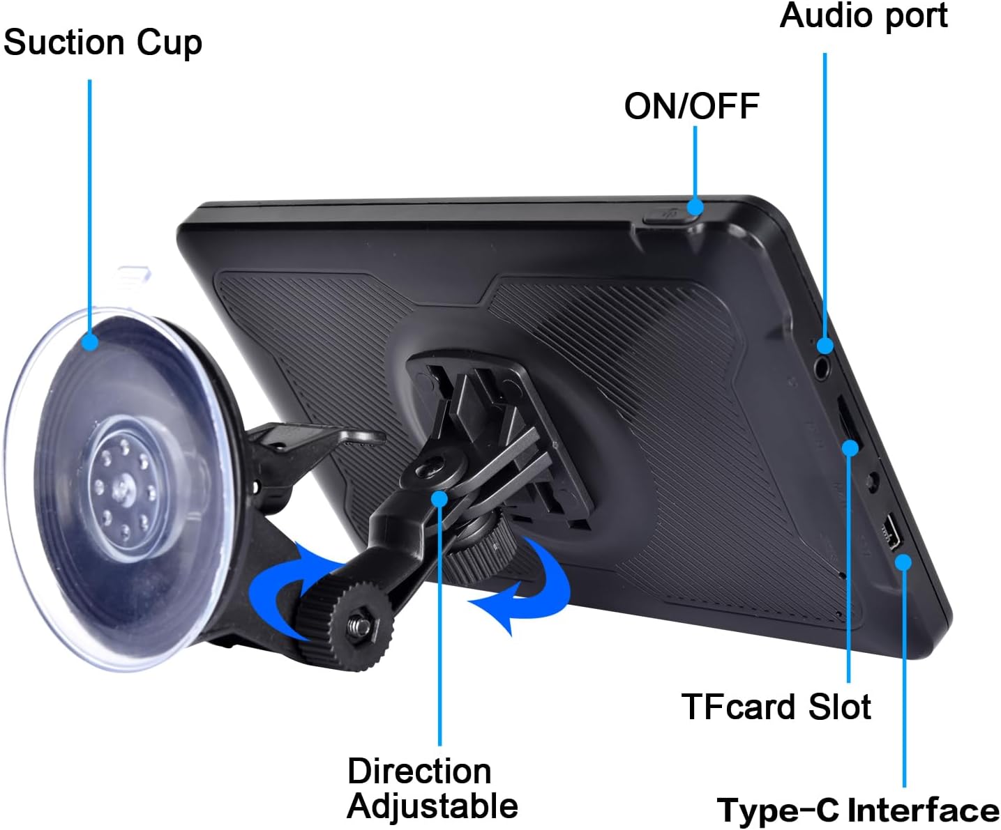 - 【Large Capacity】Our sat nav comes with High performance CPU, built-in 8GB ROM 256MB RAM, support up to 32G extended memory, plenty of room for you to storage the maps and materials, and also comes with a car charger, back bracket mount, (no SD/TF card included)