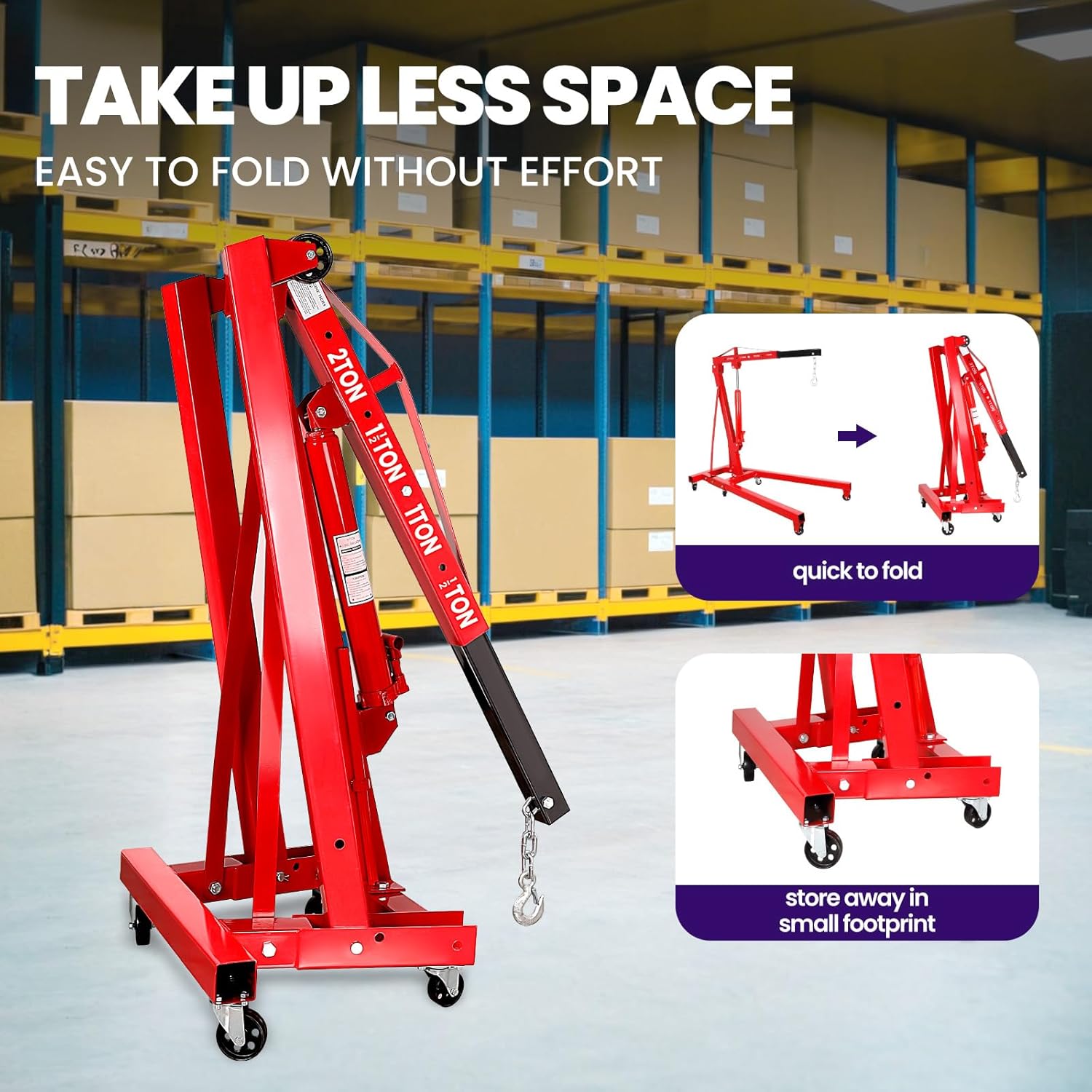- 【FOLDABLE SHOP CRANE DESIGN】: Easily folds down for compact storage when not in use—perfect for home garages or workshops with limited space. Quick-fold locking mechanism for tool-free operation.