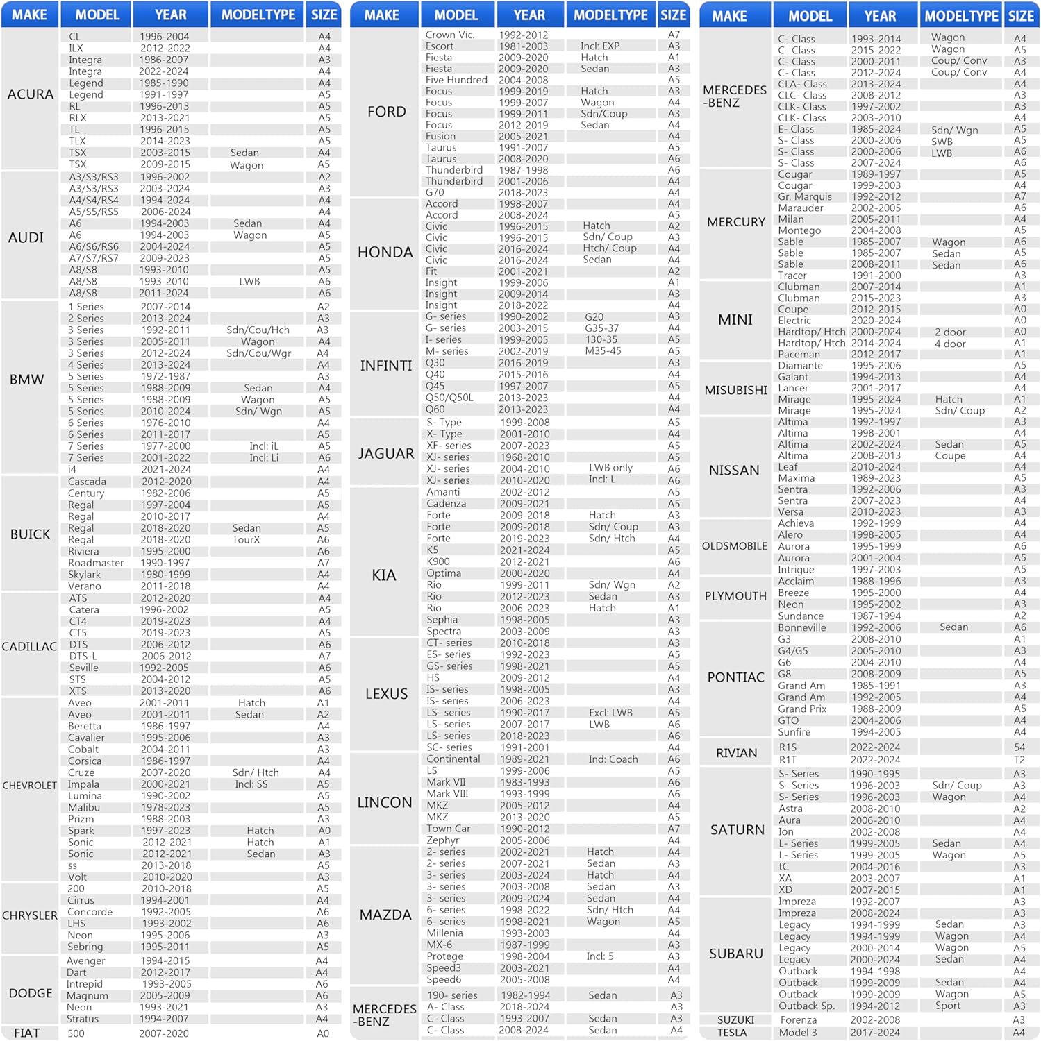 • 【Suitable for】:Custom fit for every vehicle in the size chart,so you can be sure that it will fit properly and offer the maximum level of protection.(see the Size Chart in images)