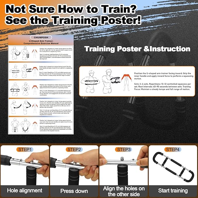 - 【Confidence in Every Rep】 Your satisfaction drives us. The CHUMPOSH Arm Trainer comes complete with 2 handles, 2 springs (delivering 40-90lbs), and the essential Training Poster & Manual. Backed by our dedicated support and commitment to your fitness success, invest confidently in this top-tier arm trainer.