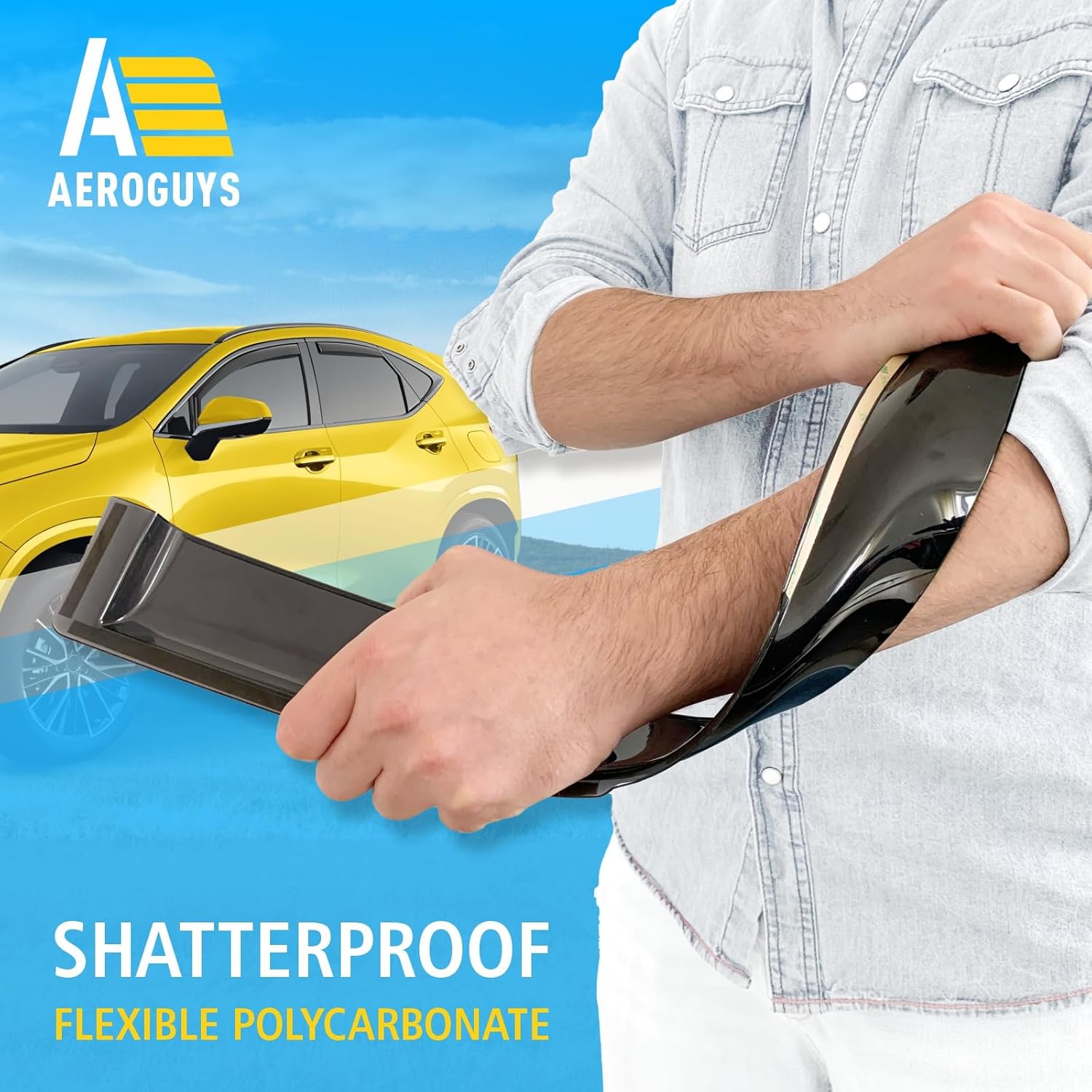- Incredibly Durable AEROGUYS Auto Window Deflectors β They are made with strong and tough polycarbonate which is clear and scratch-resistant. They also provide UV protection making your ride more comfortable under all weather conditions.