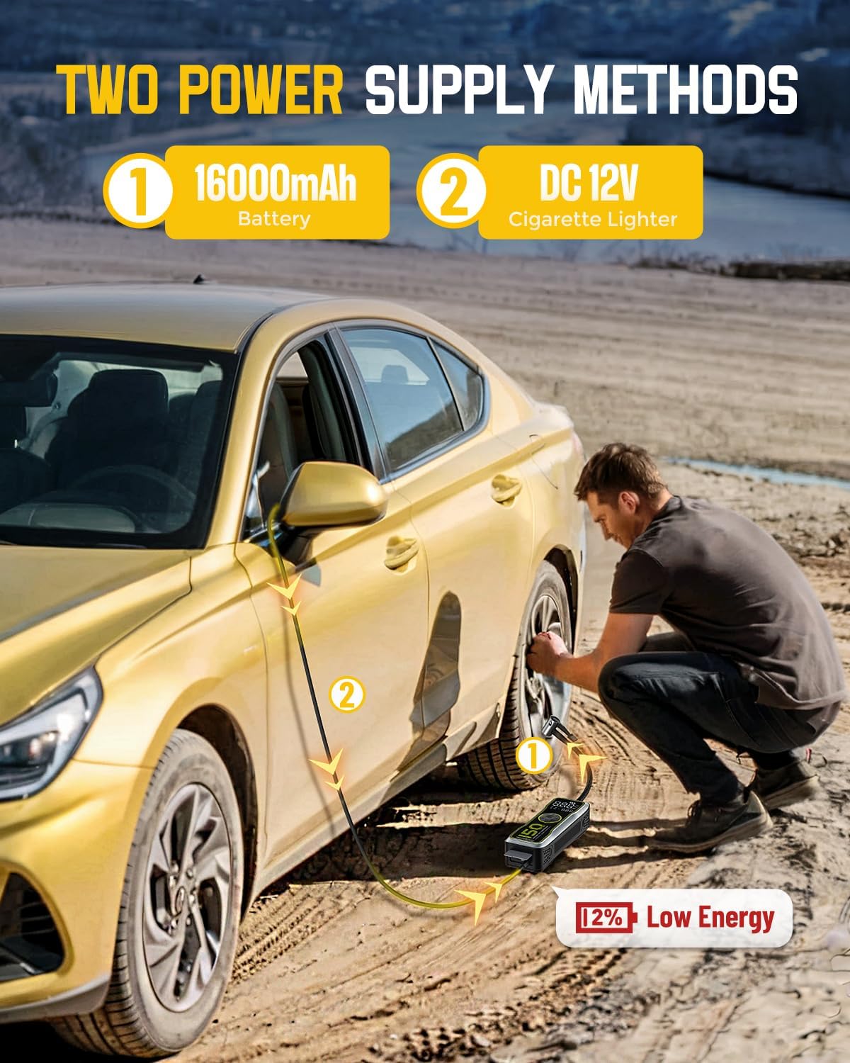 NEVERLAND Tire Inflator Portable Air Compressor - 16000mAh 150PSI Air Pump for Car Tires with Large LED Display,12V DC Tire Inflator with LED Light,Auto shut-off, for Car Motorcycle Bicycle Balls