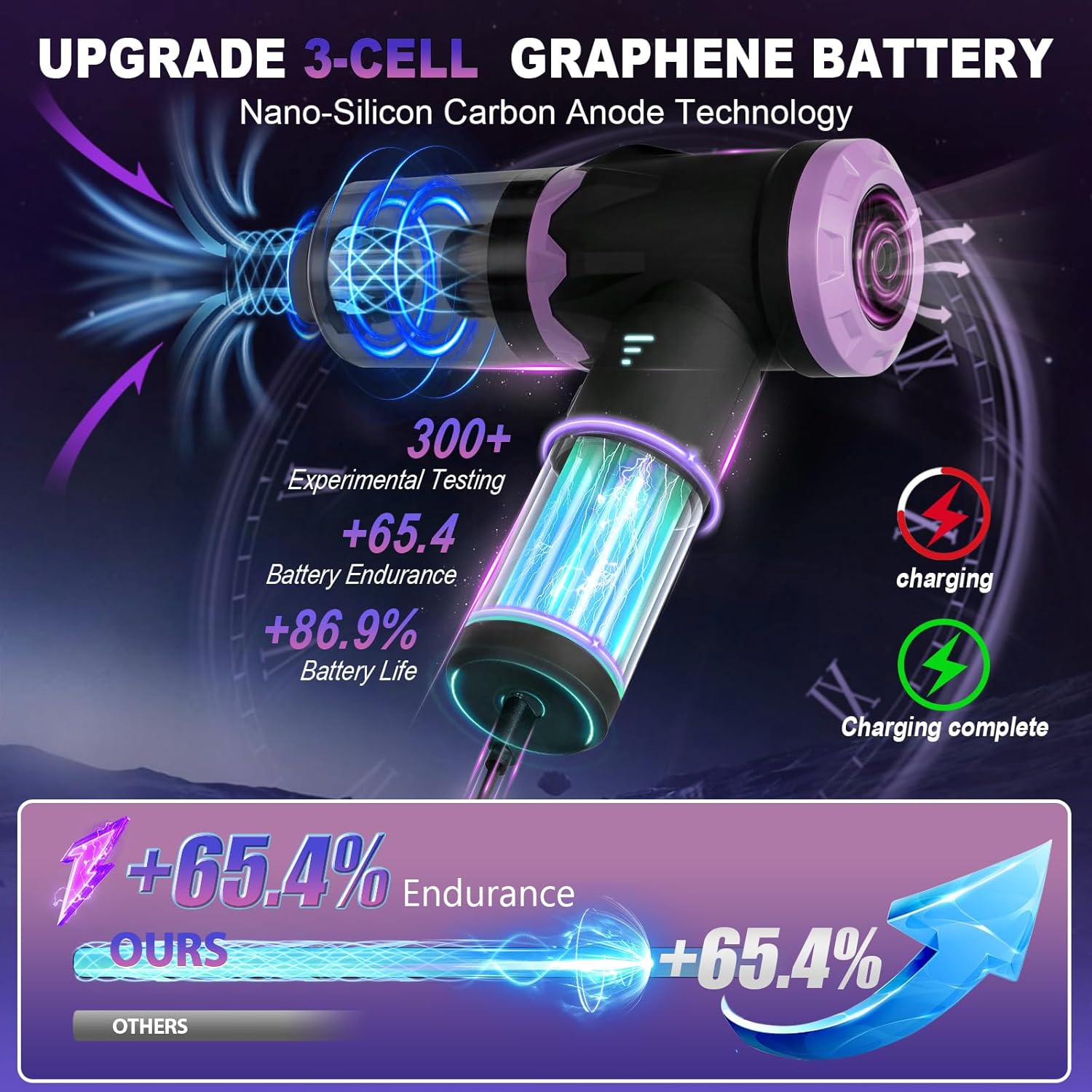 - 【5.0 Graphene Battery – Lasting Battery Endurance】 Aspiradora Para Carro for car with 2025 upgraded graphene battery for 65.4% longer runtime, enough for car, sofa, and keyboard cleaning with one charge.