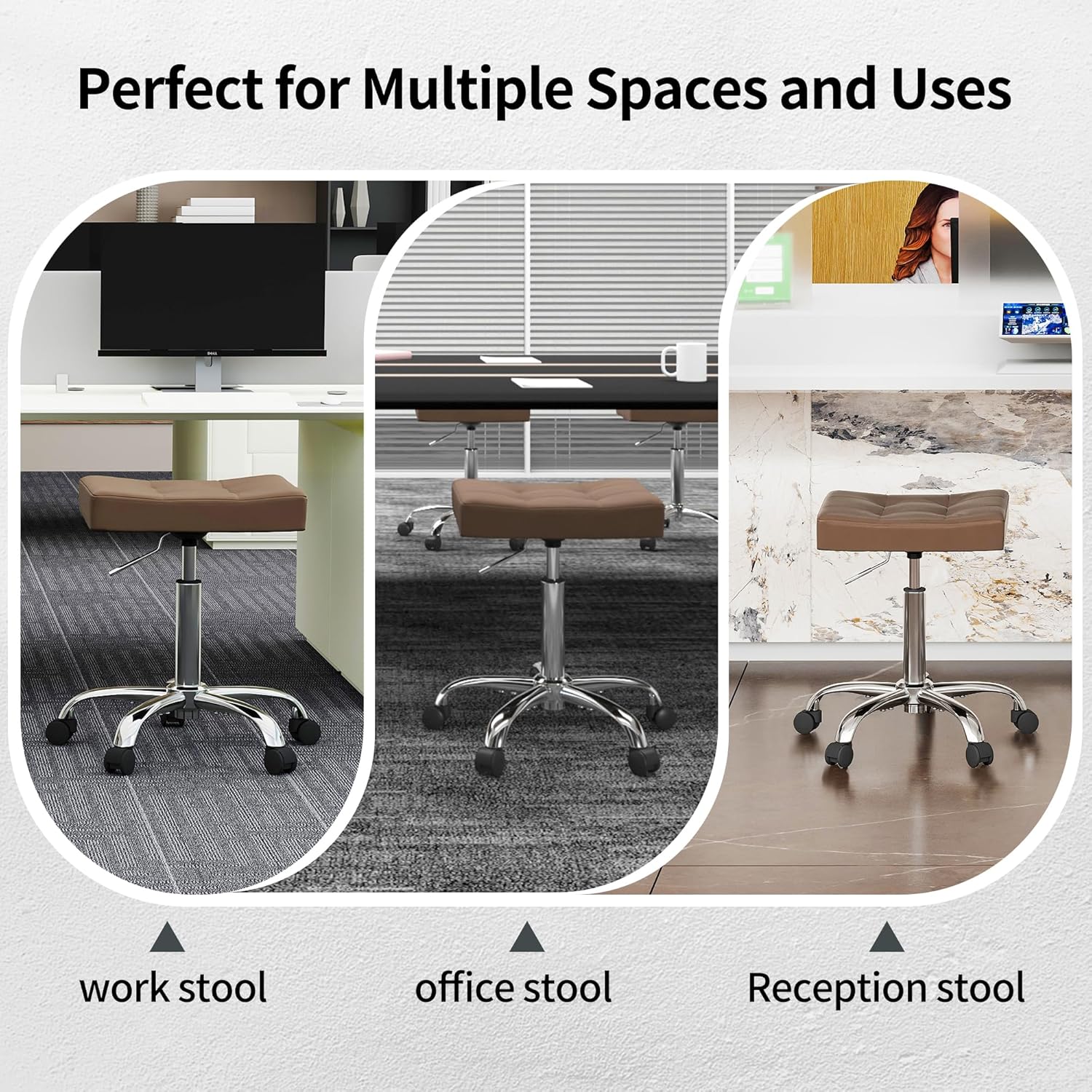 Ergonomic Desk Stool with Wheels (Adjustable Height 17"-21") (300lbs Capacity) Faux Leather Office Stool (Coffee Brown)