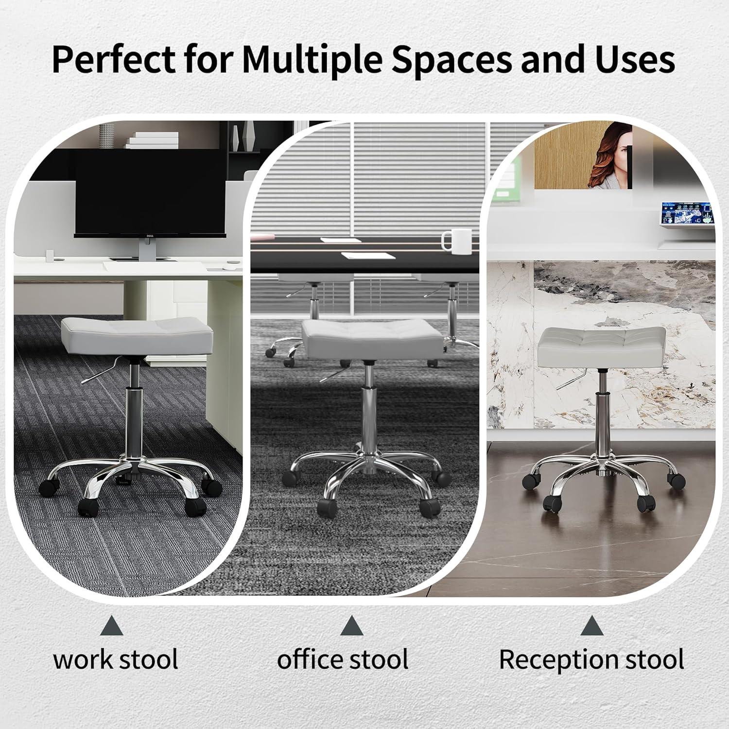 - Multi-Purpose Stool for Home and Work: This rolling stool features adjustable height to accommodate different tasks and users. Suitable for home use at vanities, desks, or kitchens, it offers easy mobility and fits various room styles. In professional settings such as offices, nail salons, barbershops, tattoo studios, beauty salons, medical facilities, or retail spaces, it provides stable seating and supports comfortable positioning during use