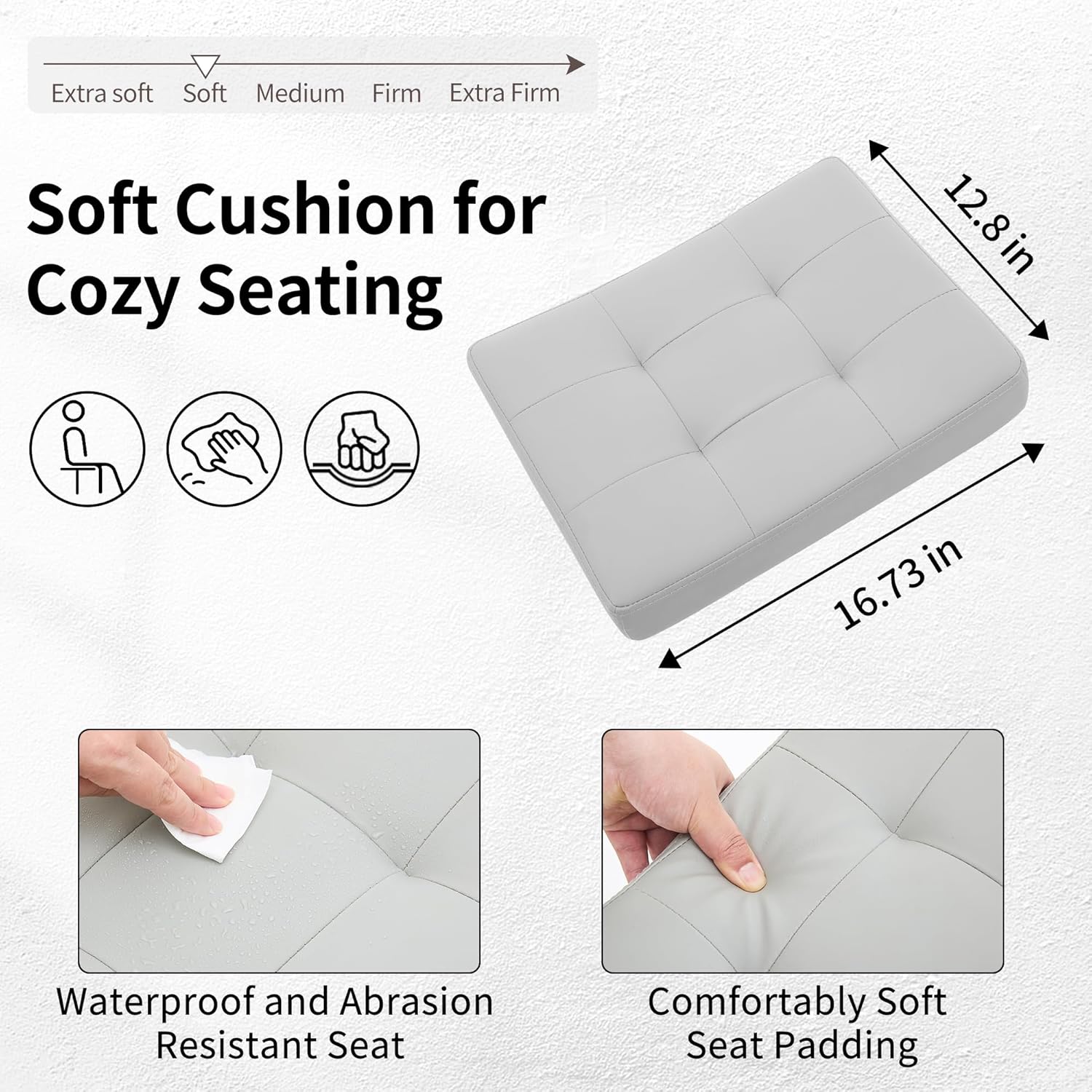 - High Quality and Durable Fabric: The seat cushion of our swivel stool is crafted from high-quality faux leather that is water-resistant and easy to clean with a damp cloth. Both the seat and backrest are padded with high-density foam, providing lasting comfort even during extended periods of use