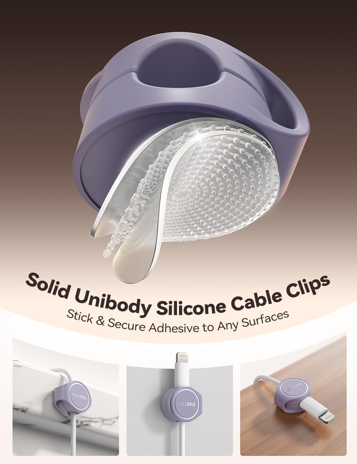 - Adhesive-enhanced No-Residue Acrylic Pad: The capability of bonding firmly to different surfaces acrylic pad is used in the FLYLEAD cable holder, while ensuring it won't leave any ugly marks on the surface after removing the cable organizer. Simply peel off the adhesive backing and affix the adhesive cable clips to a cleaned surface. Maintain firm pressure for 30 seconds(Note: For optimal adhesive performance, allow 24 hours before use), and it will then be ready for use. Additionally, two replacement adhesive pads are included with the product to facilitate reapplication of the organizer